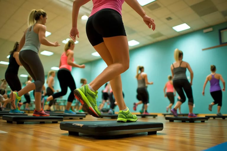 Attività aerobica coreografica a medio-alto impatto, con l’uso dello Step ed il conteggio dei beat musicali. Migliora capacità cardiorespiratorie, resistenza, ossigenazione, circolazione, ritmo ed l'equilibrio, favorendo la perdita di tessuto adiposo.